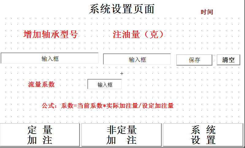 4) 控制系统面板上应设定量加注按钮,加注状态指示灯(指示灯来加表示加注过程、加注完毕、加注故障)等功能。