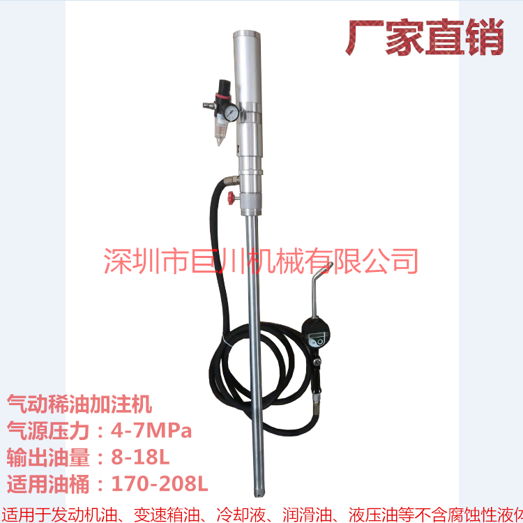 · 适用于180-220公斤标准油桶的稀油加注套件。