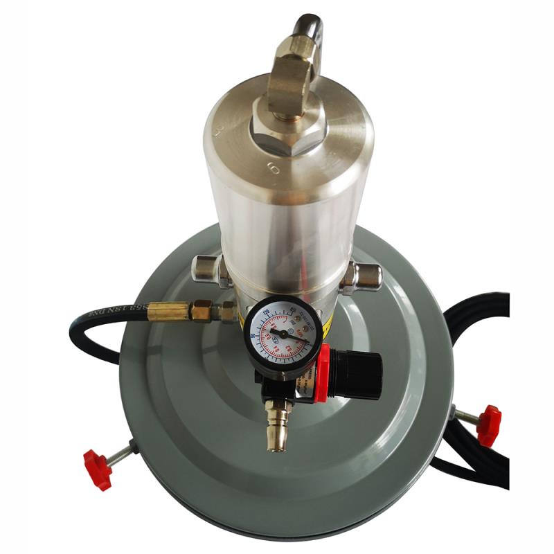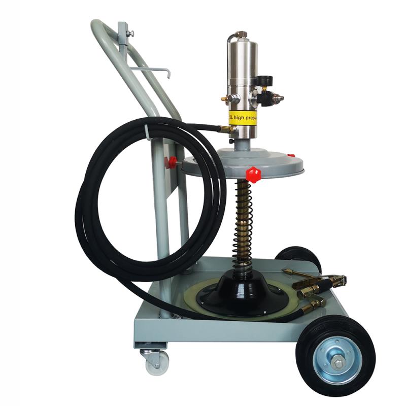 64035-1气动黄油加注机 【技术参数】 气动黄油泵:长410mm; 输油比例:50:1 气源压力:3-7KG 移动式小车一台 黄油桶盖板: 适用于20-30公斤、内径270-300mm油桶 黄油桶压板:直径310mm,内径270-300mm油桶 输油管:管长4m 高压黄油枪、带尖嘴黄油软管 【设备描述】 该装置以气源为动力,由气动元件控制,驱动气动泵工作,具有性能稳定、快速注脂、注脂压力高、适用范围广泛等特点。 该类泵的最大优点为机动性强,操作简便,直接用20kg标准油脂桶 售后服务及保修:供方提供一年的保修期