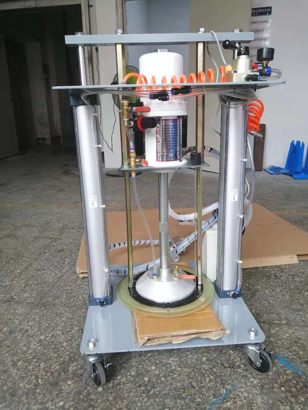 高粘度油脂加注机,配置高粘度用气动柱塞台湾泵、装有便于吸取高粘度材料的压油盘、空气升降机、作为高粘度材料吸出装置进行使用。 通过操作升降机、泵和圆形盖可以进行升降。 升降机仅需通过转换阀进行升降、就可以简单地进行油桶交换。 另外、配有标准底板、所以在任何地方都可以简单地进行设置。