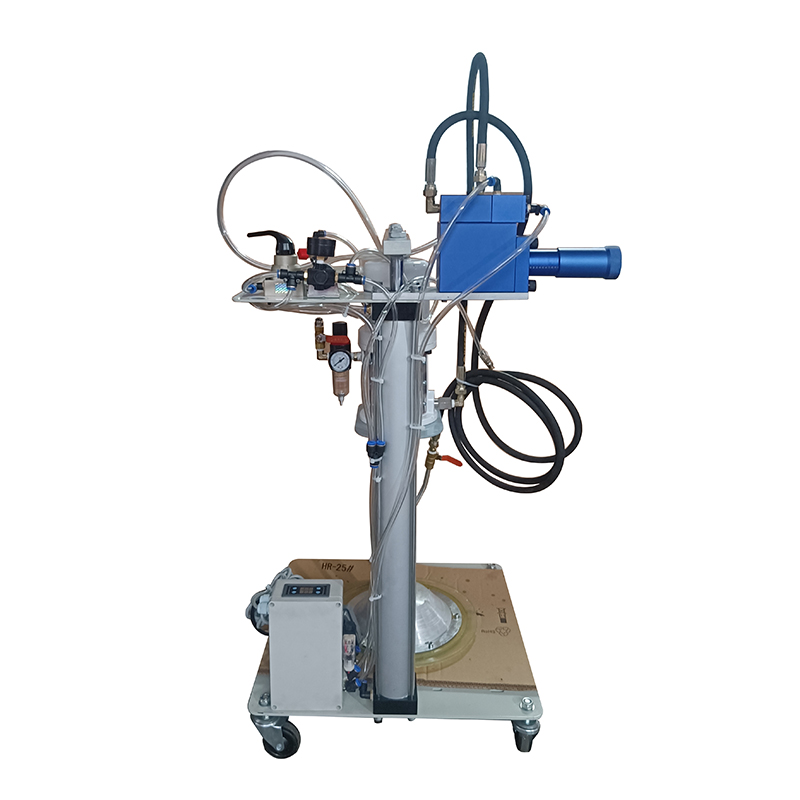 【工业级双立柱定量加油机64110-D30设备描述】 工业级双立柱定量加油机64110-D30配置的气动柱塞泵、压油盘、空气升降机及其他组合件专为抽注高粘度材料所配。 高粘度材料专用的压油升降机构和压油盘构造有超强的挤压力量,广泛用于油灰、粘接剂、润滑脂、印刷油墨等高频率集中定量供给的工作环境。 升降机的工作可通过转换阀进行升降操作,泵和压油盘也随着升降。当油桶内的材料用完后也可通过升降机的工作进行油桶更换。 【工业级双立柱定量加油机64110-D30技术参数】 出油口:G1/4(软管接头) 进气口:G1/4(软管接头) 气动泵压力比: 45:1 气源压力: 4-8Kg/cm2 黃油输出压力:180-480 Kg/cm2 定量可调节范围:0.5-30克(可根据要求订做。) 油脂专用阀:耐高压,带定量调节标尺。 定量精度:±1% 出油量: 500- 1100克/分;; 油管长度: 4米 适用油桶: 20L以下标准桶装黄油. 输送介质:0#~3#甚至更高黏度黃油均能順畅抽注。