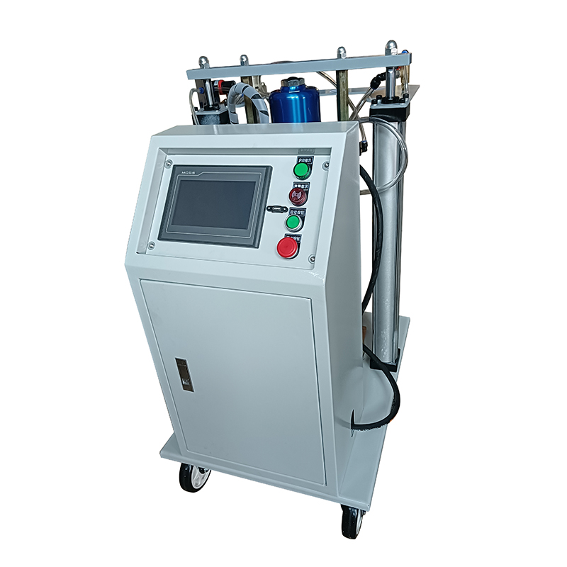 双立柱油脂定量加注机 移动式气动数显定量注脂系统压力高,双气缸设置专用压油升降机构加注油,实时计量准,重复性好,PLC液晶显示人机操作界面,广泛用于换油中心,车间生产线、冶金,造纸,电子,电力,港口、工程机械、汽车、机械设备、轴承行业中压盖前加脂,微型电机行业装配线的减速齿轮工艺加脂,电动工具行业中齿轮副装配加脂。是企业提高产品装配质量的必备产品 【技术参数:】 气动泵:50:1 吐出油量: 600-1000g/Min; 气源压力: 4-8KG 定量液晶控制器:JC900 定量控制柜电源:220V 设定范围:1-9999.9G (随意设定值) 注油精度:±1%; 输油管:1/4,2米(可根据客户要求配置) 简易加油枪:1个 适用油类 0~3号黄油 ; 工作环境温度:-10ºC-50ºC 造用25公斤以下标准油桶加注使用(注:压油盘尺寸按客户油桶大小定制) 控制界面: 液晶触摸操作显示屏,PLC机控制操作简单方便 界面设定有:定量加注,定额加注(可不选),非定量加注,系统设置,数据查询及U盘导出,打印等功能(打印为附选件) 采用重复性能稳定高精度定量检测的流量计控制定量加注; 硬件选择可靠、稳定,性价比高,操作简便、界面友好;