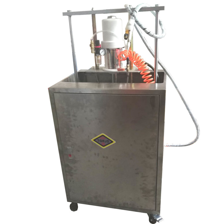 64110-A双立柱气动黄油机 一、 产品描述 双立柱润滑脂加注机适用于20公斤以下标准油脂桶,其性能稳定,自动化程度高。使用时只需控制升降机构的开关,将压板压入油桶,打开气动泵气源开关,打开加油枪即可加油。 技术特点: 性能稳定,操作简便。操作人员经简单培训即可熟练掌握。 能适应各种恶劣条件如低温、空气湿度大、灰尘多、使用强度大。 故障率低。和普通小泵相比其结构简单,上下行程均出油,绝少出现机械故障。 适用于所有不同黏度的润滑脂。 设备组成 45:1气动柱塞,黄油枪,双立柱举升机,控制阀装置,油水分离器,油雾器,油管,机箱 技术参数 材料出口:G1/4(软管接头) 空气入口 :G1/4(软管接头) 压 力 比: 45:1 (进口泵,国产泵二选一) 气源压力: 4-8Kg/cm2 输 出 量: 500-800g/分钟 油管长度: 4米 黃油输出压力:180-360 Kg/cm2 适用0-3#油脂加注 适用于换油中心,车间生产线、冶金, 造纸, 电子, 电力, 港口、工程机械、汽车、机械设备、轮船农用车辆等场合黄油脂的润滑输送和加注。 也广泛用于汽车零部件行业中门锁、制动器、雨刮器、座椅导轨等工艺加脂,轴承行业中压盖前加脂,微型电机行业装配线的减速齿轮工艺加脂,电动工具行业中齿轮副装配加脂 售后服务及保修:供方提供一年的保修期