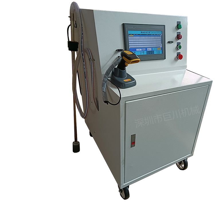 润滑油定量控制扫码加油机 一,技术参数 注油精度:±1%; 设定范围:0.1-999.9L 电源:220VAC,50HZ 1.1KW 供油枪数量: 1把 供油流量: 10-20L(升/分钟) 二,【特 点】 定量加注油由椭圆齿轮流量计控制,精度高; 串行通讯口; 可选配条码扫描功能,根据条码自动读取识别需加注量; 数字预设、修改、存储加注数值,界面友好,操作容易; 加注精度可进行标定,确保加注精度; 工作状态实时动态显示; 三,加注步骤: 工件到位―扫描枪-显示预设定值-加油枪对准注油口―加油信号(人工给定)―计量加注―自动停止 四,【应 用】 应用行业:汽车发动机、变速箱等总装生产线,空调压 缩机冷冻油装配生产线,工程机械、家电、电力、石化 等行业大批量部件装配中的加注润滑油、乳化液及类似 液体的环境。 适用范围:适用于发动机油、变速箱油、中后桥油、燃 油、冷却液、动力油、液压油等油品在非真空状态下的 定量加注。定量加注系统采用优质的元气件、专业的结 构设计,使系统的加注精度、可靠性有了良好的保证,同时使现场的作业环境得到改善。