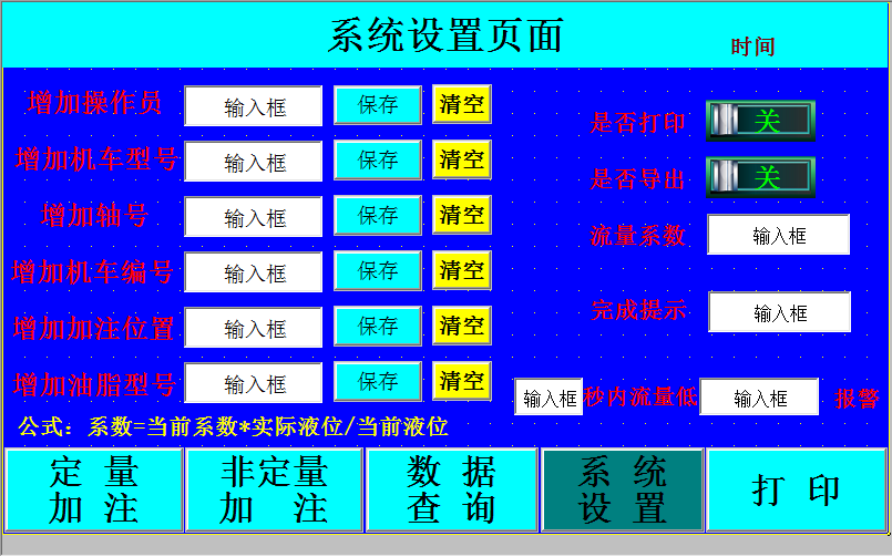 过滤加注机JC900-40A (1)特点:采用PLC定量显示操作屏,高精度流量计装置对油品进行罐装、加注、输送等作业。在实现了数字预设、修改、同时还能实现自动循环工作和信号输出。 适用于机械生产车间原装油或其他类似流体油料定量加注作业。是目前汽车修理厂,铁路工程、汽车4S站,快速换油服务中心,车间生产线等领域首选加注设备。 参 数: 气动抽油泵:5:1 (进口配置) 输入压力:4 –9bar 加油量:10-16升/分钟 输出压力:20 –45bar 油桶容量:40L 定量控制界面:TI800 设定范围:1-9999.9L 时间间隔范围:1-999S 注油精度:±1%; 供油枪数量: 1把(简易加油枪) 采用台湾进口油泵 油泵配置过滤装置 软管规格: 1/2输出油管长10米配自动卷管器 采用重复性能稳定高精度定量检测的流量计控制定量加注; 硬件选择可靠、稳定,性价比高,操作简便、界面友好; 开关阀感应敏捷、耐压高、耐用、可靠性高; 控制系统的平均无故障时间大于5万小时; 数字预设、修改、过滤网装置 加注精度可进行标定,确保加注精度,工作状态实时动态显示,数字液晶显示单次及累计加注量; 加注精度可进行校准标定,确保了加注精度; 可根据批量加注要求,设定自动重复加注的间隔时间,是生产线大批量定量加注提高工作效率的首选配置。 加注步骤:预设定好加油量-工件到位―注油口固定―加油信号(人工给定)―计量加注―自动停止 适用于发动机油、齿轮油、变速箱油、中后桥油、冷却液、动力油、液压油及防冻液或其他类似不含腐蚀性流体的在非真空状态下长距离的定量输送加注 产品质保一年