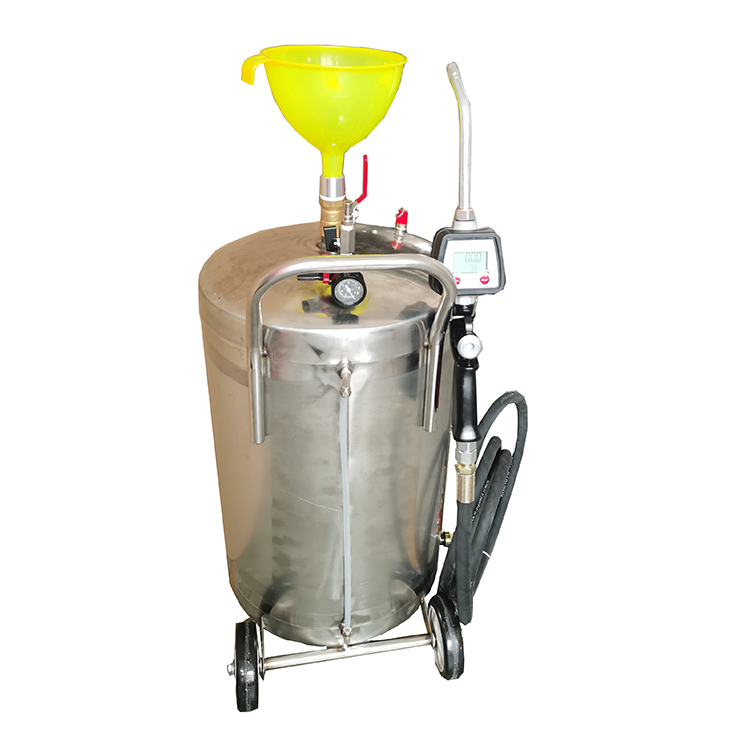 33070气动液压油加注机 【技术参数】 输 油 管: 长1.5m 漏斗:1个 数显加油枪:37713 罐体容量: 24lL 输 油 量: 3-5L/min 【产品简介】 气动稀油(齿轮油加注)机具有外形灵巧﹑使用方便,操作简易等特点,用途广泛,不仅用于汽车行业的制造﹑维修,美容等服务,而且适用于工业﹑农业,建筑业等工程机械设备的制造﹑维修,保养 安徽显计量加油 售后服务及保修:供方提供一年的保修期