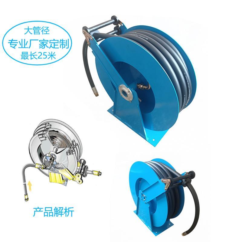 | 自动卷管器分为稀油、黄油、水、气体四大类,被广泛应用于汽车修理养护,工业、农业、医药等行业,它的主要特点是节省空间,省时省力,工作环境清洁整齐,提高工作效率。 该产品全部采用进口优质碳素钢或不锈钢材料经先进的模具化生产制造,其核心部件经先进的CNC精密加工中心,经电脑编程一次加工而成。确保了零部件的精度。 1、适用于空气输送的软管盘: 管径3/4英寸空气管,长度10M-25M,工作压力10MPa,短管长1.0M,3/4”接头。 2、适用于润滑油/黄油输送: 口径1英寸高压油管,软管长10M-20M,工作压力15MPa,短管长1.0M,口径1英寸接头。 3.适用润滑油/黄油: 口径3/4英寸高压油管,软管长10M-25M, 工作压力15MPa,短管长1.0M,口径1英寸接头 。 4、稀油、黄油、压缩空气三联件组合一体化,该组件主要用于汽车修理厂,它是由一个供油,供气中心,提供气源及油品,通过管路联接,构成一个完善的供油供气系统,方便了用户,实现了不同油品及压缩空气,同时在一个组件上供应不方便条件,提高了工效,节省时间,深受用户好评。