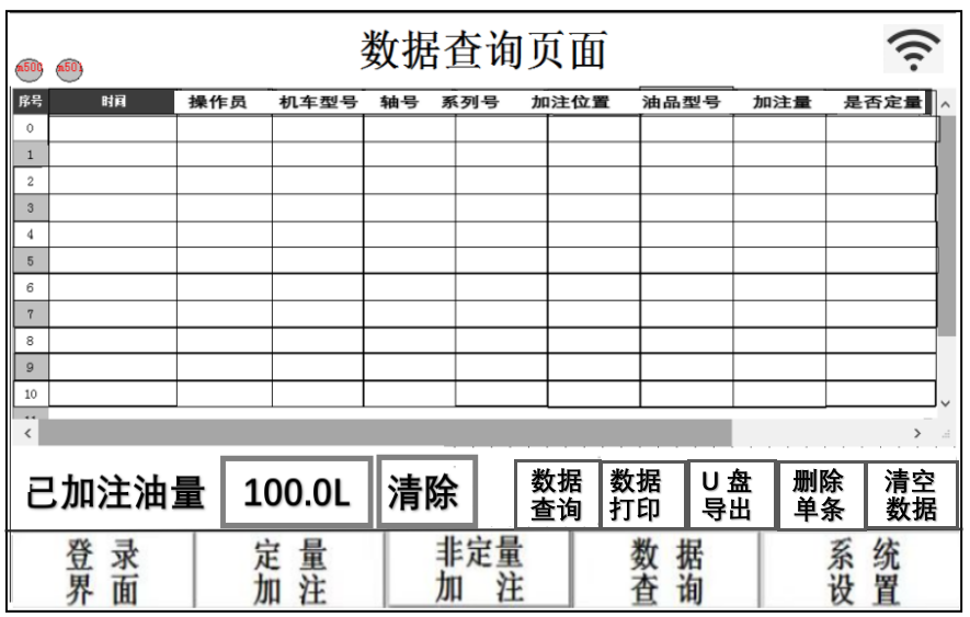 一、主要技术参数: 移动式双立柱电动定量加油系统由(电气组合),双气缸设置专用压油升降机加注设备,通过操作升降机仅需通过转换阀进行升降、就可以简单地进行油桶交换,方便快捷 【技术参数:】 使用电源:220V 气动抽油泵:50:1(进口/国产泵) 定量液晶控制器:JC900 双气缸气源压力:3-7KG 设定范围:1-9999.9G (随意设定值) 时间间隔范围:1-999S 注油精度:±1%; 输油软管气管配套 适用油类 0~3号黄油 ; 工作环境温度:10ºC-50ºC 适用20公斤以下标准油桶加注使用 二、控制界面: 液晶触摸操作显示屏,PLC定量控制操作简单方便 界面设定有:定量加注,非定量加注,系统设置,数据查询等功能 采用重复性能稳定高精度流量计传感器,控制定量加注;硬件选择可靠、稳定,性价比高,操作简便、界面友好; 开关阀感应敏捷、耐压高、耐用、可靠性高; 数字预设、修改、存储加注量;加注数值实时动态显示,数字液晶显示单次及累计加注量;操作员工号输入保存,密码开锁,异常报警,连网,远程遥控,扫码等装置(按要求配置) 加注精度可进行校准标定,确保了加注精度; 可根据批量加注要求,设定自动重复加注的间隔时间,是生产线大批量定量加注提高工作效率的优选配置。 加注步骤:预设定加注量保存——工件到位――对准加油口――加油信号(人工给定)――计量加注――自动停止