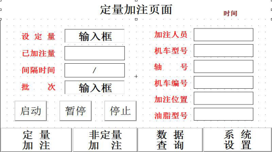 | 电动黄油定量加注机 JC900-20B 技术参数: 电源: 220VAC 50Hz 功率:0.75kw 油桶容量:50升 吐出油量:300-500g/Min; 输出压力:<300公斤; 公称压力:0-20MPA 适用油类 0~3号黄油 ; 定量控制油品种类:1种 配软管盘:1/4"、10米(选配件) 产品特点: (一)油脂加注机: 1) 即使开机中也可以补充黄油,节少停机换油时间。 2) 摆动式油泵,输出油脂连续不中断,完全杜绝黄油泡空气现象,即使3#高粘度黄油亦能输送供给。 3) 拨油片压油设计,拨油片旋转排除油脂包含之空气,锐利切边上切油脂使其下降、下压油脂并填平油由摆动式油泵扫食所造成的空间。 (二)定量控制系统: 1) 高精度流量计控制定量注油。 2) 注油的定量检测采用重复性好的流量计; 3) 液晶触摸操作,自带声光报警功能 4)硬件选择可靠、稳定,性价比高,操作简便、界面友好; 5) 开关阀选用耐压高、开关动作时间短、寿命长、可靠性高的产品。 6) 控制系统的平均无故障时间大于5万小时; 7)数字预设、修改、存储加注数值。 8) 加注精度可进行标定,确保加注精度,工作状态实时动态显示,数字液晶显示单次及累计加注量,操作员工号输入保存 9) 密码开锁,USB端口导出接口,电脑存档, 缺油报警装置,数字显示单次及累计加注量等参数查询 10) 定量及非定量加注选项,定额定量选项功能(附选配置) 11) 具有批量加注功能,尤其适合生产线大批量生产的需求 12) 设备外形美观、操作方便。 13)按下电动泵上的电源开关。 14)对准工件或设备的注油口。 15)在控制器操作面板上人工给定加油信号。 16)设备开始计量加注油脂。 17)加注完预设定油脂量后自动停止。 18)批量加注时,设备在预设定的时间段后自动开始重复上一个注油工作,如此循环完指定的批量值后自动停止。 简述: 单次加注功能:预设定加注量——工件到位――对准加油口――加油信号(人工给定)――计量加注――自动停止 批量加注功能:预设定加注量及批量加注工件总数、间隔时间——工件到位――对准加油口――计量加注――自动停止——下一工件到位——对准加油口――计量加注――自动停止 售后服务及保修:供方提供一年的保修期