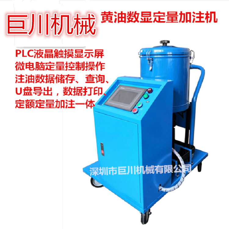 I800-20D移动式电动黄油定量加注机 技术参数: 电源: 220VAC 50Hz 功率:1.1kw 油桶容量:25升 吐出油量:200-300g/Min; 输出压力:<300公斤; 公称压力:0-20MPA 适用油类 0~3号黄油 ; 定量控制油品种类:1种 配软管盘:1/4"、10米(选配件) 产品特点: (一)油脂加注机: 1) 即使开机中也可以补充黄油,节少停机换油时间。 2) 摆动式油泵,输出油脂连续不中断,完全杜绝黄油泡空气现象,即使3#高粘度黄油亦能输送供给。 3)拨油片压油设计,拨油片旋转排除油脂包含之空气,锐利切边上切油脂使其下降、下压油脂并填平油由摆动式油泵扫食所造成的空间。 (二)定量控制系统: 1) 高精度流量计控制定量注油。 2) 注油的定量检测采用重复性好的流量计; 3) 液晶触摸操作,自带声光报警功能 4) 硬件选择可靠、稳定,性价比高,操作简便、界面友好; 5) 开关阀选用耐压高、开关动作时间短、寿命长、可靠性高的产品。 6) 控制系统的平均无故障时间大于5万小时; 7) 数字预设、修改、存储加注数值。 8) 加注精度可进行标定,确保加注精度,工作状态实时动态显示,数字液晶显示单次及累计加注量;操作员工号输入保存 9) 密码开锁,USB端口导出接口,电脑存档, 缺油报警装置,数字显示单次及累计加注量等参数查询 10) 定量及非定量加注选项,定额定量选项功能(附选配置) 11) 具有批量加注功能,尤其适合生产线大批量生产的需求 12) 设备外形美观、操作方便。 简述: 单次加注功能:预设定加注量——工件到位――对准加油口――加油信号(人工给定)――计量加注――自动停止 批量加注功能:预设定加注量及批量加注工件总数、间隔时间——工件到位――对准加油口――计量加注――自动停止——下一工件到位——对准加油口――计量加注――自动停止 售后服务及保修:供方提供一年的保修期