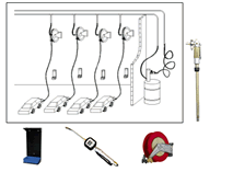 | 集中供油系统(4把枪) 1、集中供油系统简介:汽车在更换机油时一般使用量,根椐车辆的不同约为3-6升,传统的机油包装是1升和4升,按现规格每次更换机油时,要么不够1桶,要么剩余.如何杜绝浪费?集中式机油加注系统能做到!